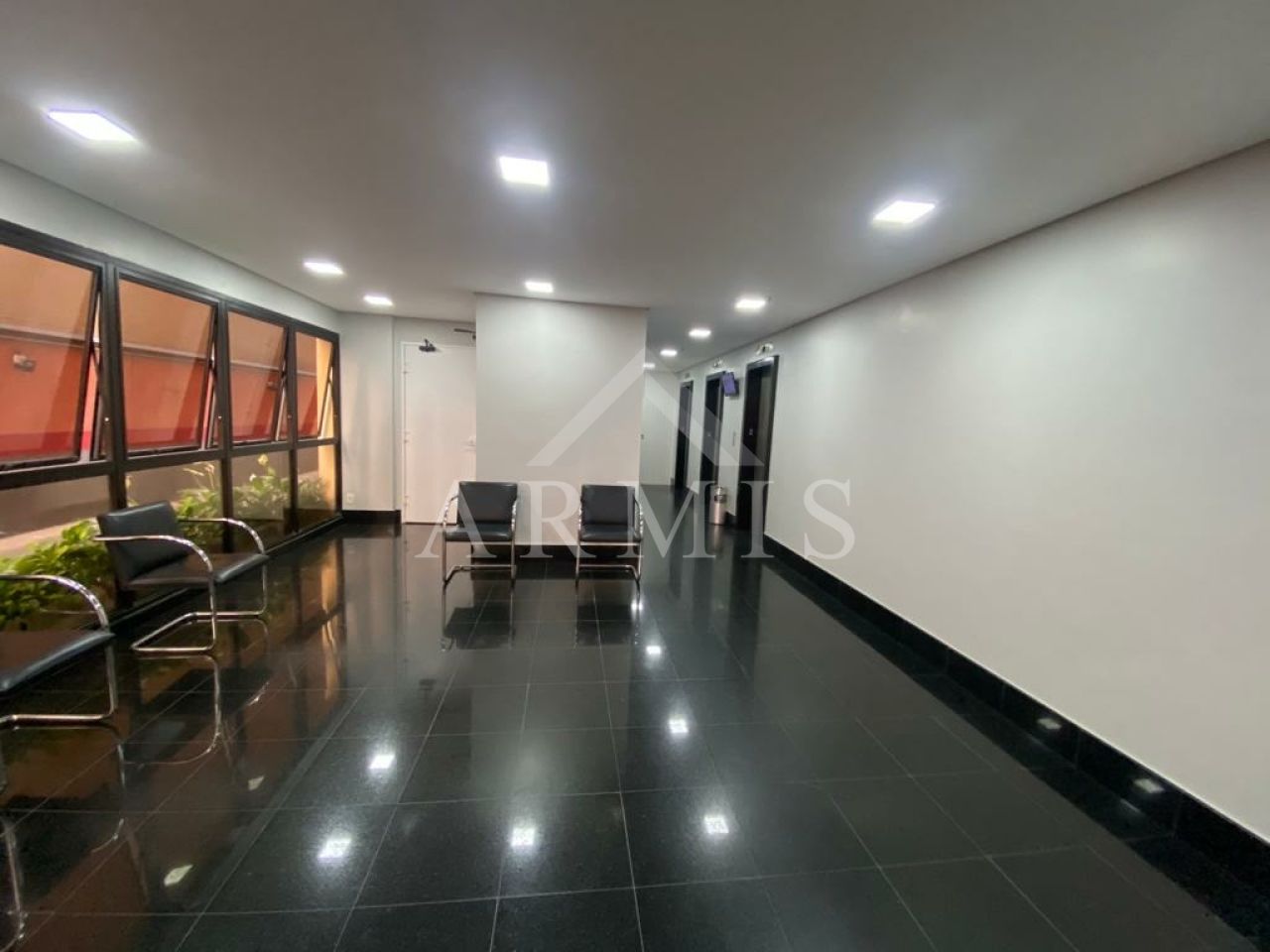 Detalhes: Contém recepção instalada, balcão, armário auxiliar, persianas e ar condicionado.